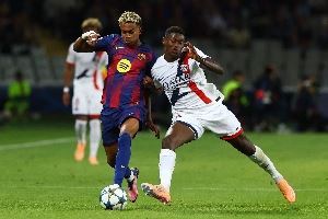 体育资讯10月02日讯 欧冠联赛阶段第2轮,巴萨主场1-2遭巴黎逆转绝杀,23岁左后卫努诺-门德斯对位18岁右边锋亚马尔,两人均首发打满全场。